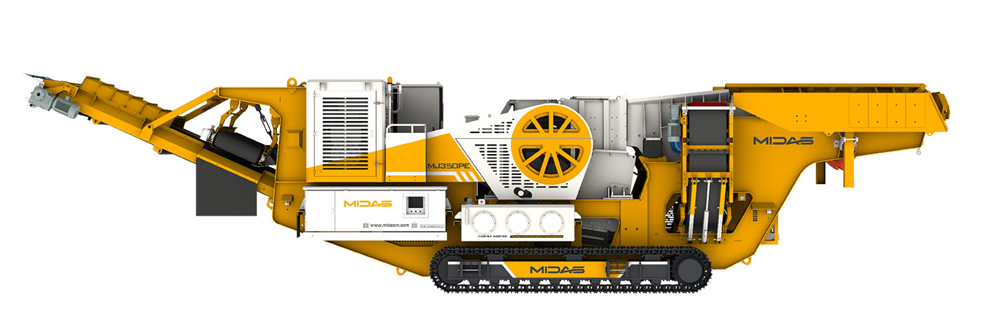 Midas MJ series tracked mobile jaw crushing plant is equipped with European version C series crusher, super-large folding hopper, independent pre-screening system, and iron removal spray device. It is mainly used for primary crushing of materials, with large feed size and wide discharge range. It is suitable for all kinds of rocks. Convenient site to site transfer, and high crushing efficiency.