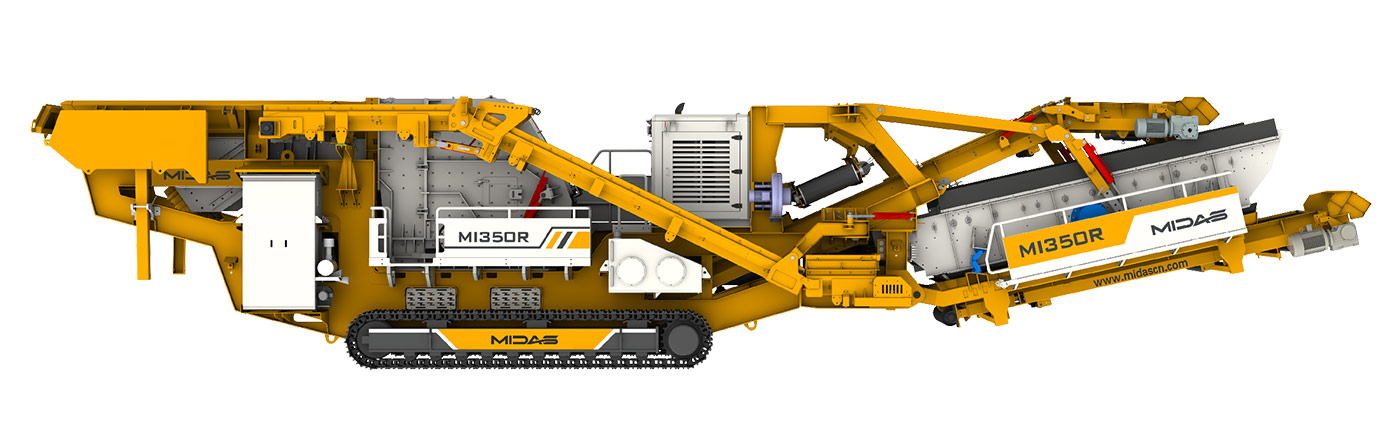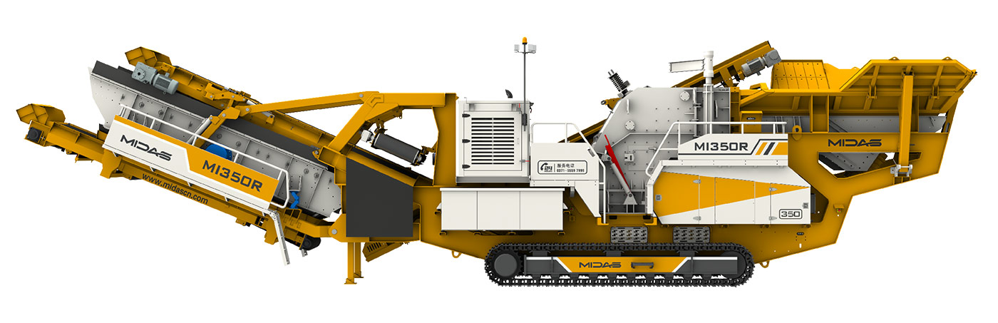 Midas MI series tracked mobile impact crushing plant, each module is compact and efficient, many places are assisted by hydraulic pressure, equipped with return screening system, in addition, iron removal air separation spray device, can do primary and secondary crushing, suitable for medium soft rock and construction waste. The machine delivers stable performance, is easy to move between sites, and provides a superior particle shape.