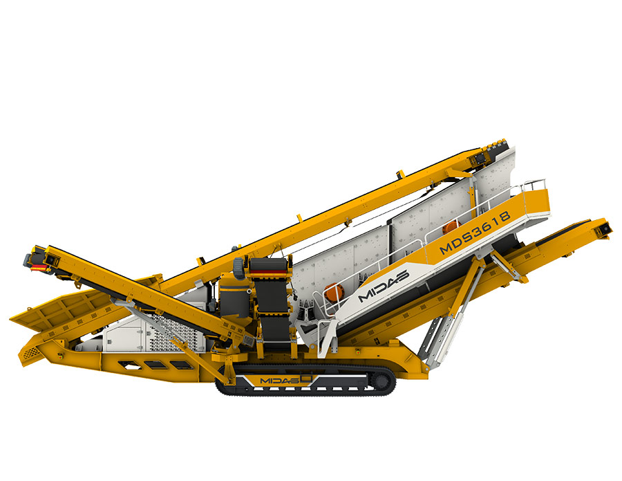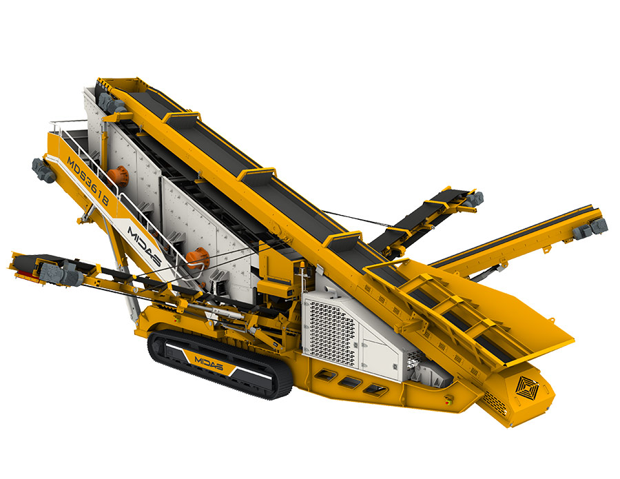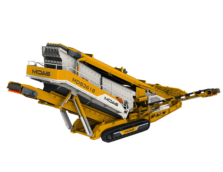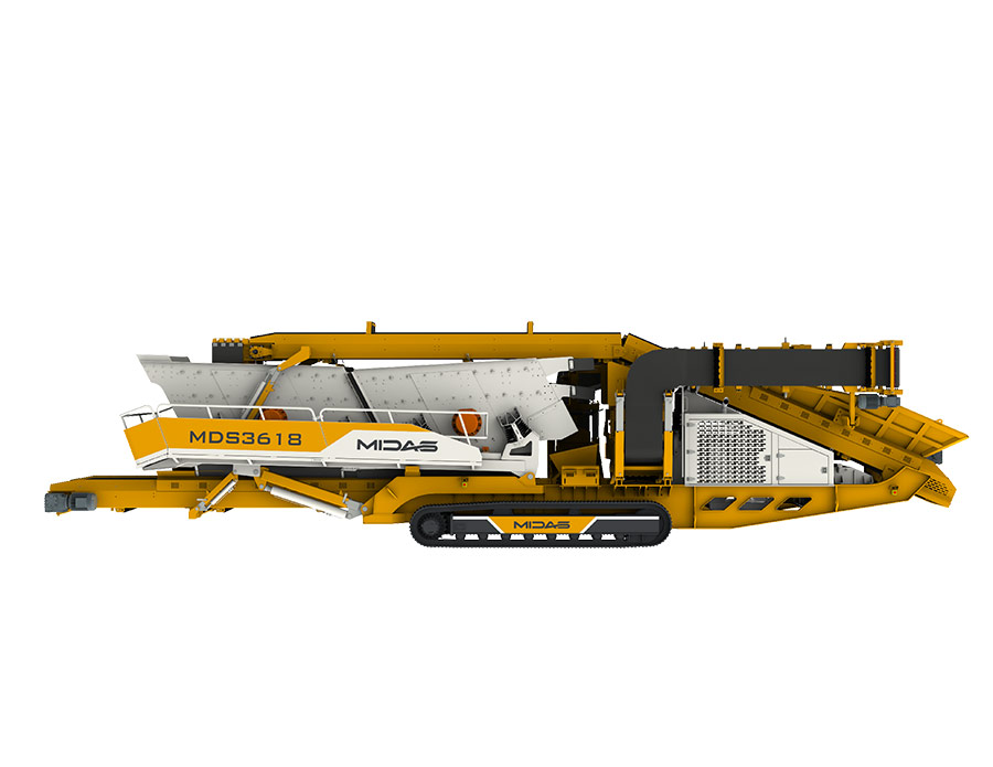 Midas MDS series tracked mobile screening plant is equipped with vehicle-mounted automatic folding belt conveyor, which has a large handling capacity and can be used for fine screening of materials. It is well-suited for screening finished products from various crushed aggregates and construction waste. The entire unit is highly mobile, durable, and exceptionally reliable.