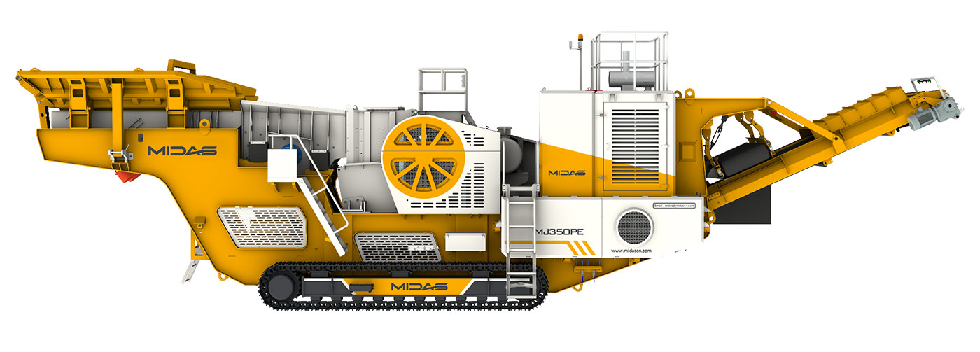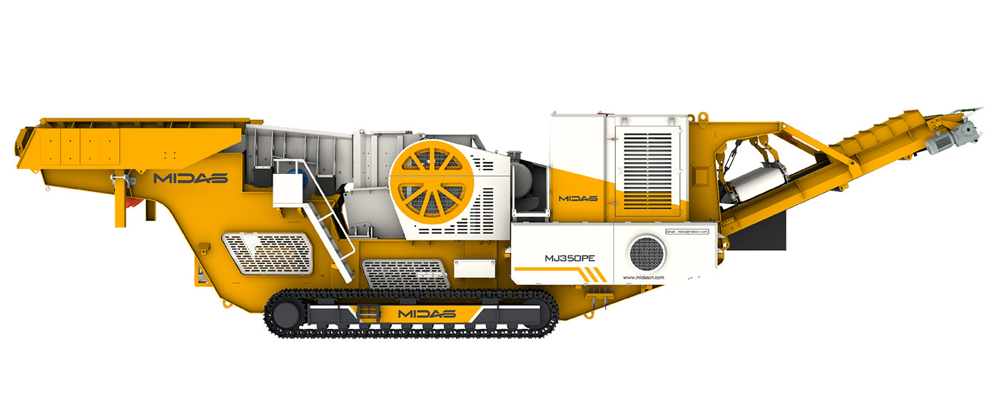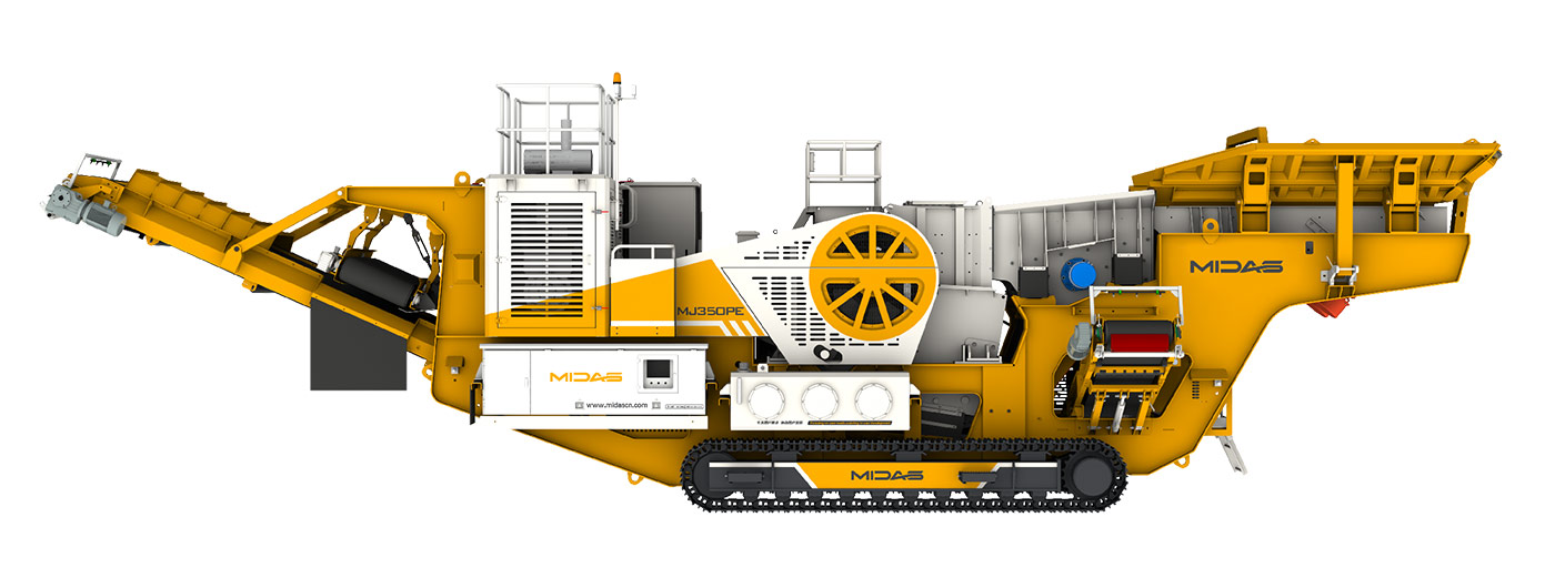 Midas MJ series tracked mobile jaw crushing plant is equipped with European version C series crusher, super-large folding hopper, independent pre-screening system, and iron removal spray device. It is mainly used for primary crushing of materials, with large feed size and wide discharge range. It is suitable for all kinds of rocks. Convenient site to site transfer, and high crushing efficiency.