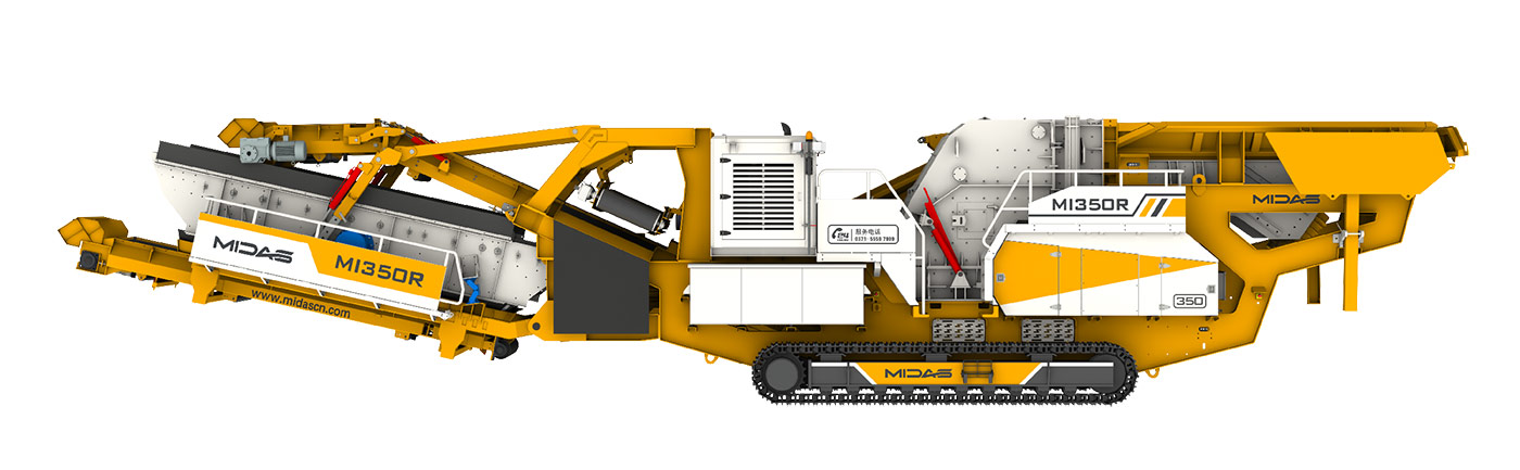 Midas MI series tracked mobile impact crushing plant, each module is compact and efficient, many places are assisted by hydraulic pressure, equipped with return screening system, in addition, iron removal air separation spray device, can do primary and secondary crushing, suitable for medium soft rock and construction waste. The machine delivers stable performance, is easy to move between sites, and provides a superior particle shape.