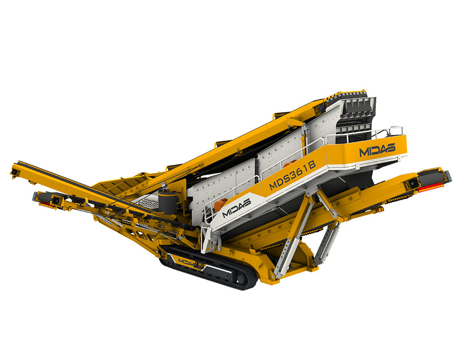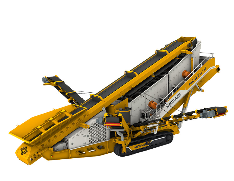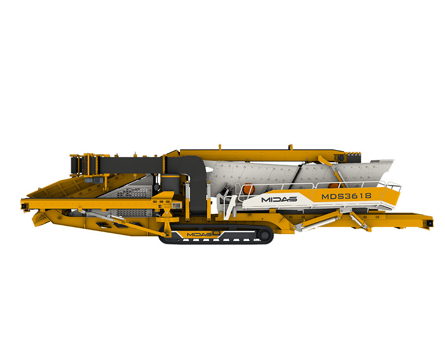 Midas MDS series tracked mobile screening plant is equipped with vehicle-mounted automatic folding belt conveyor, which has a large handling capacity and can be used for fine screening of materials. It is well-suited for screening finished products from various crushed aggregates and construction waste. The entire unit is highly mobile, durable, and exceptionally reliable.