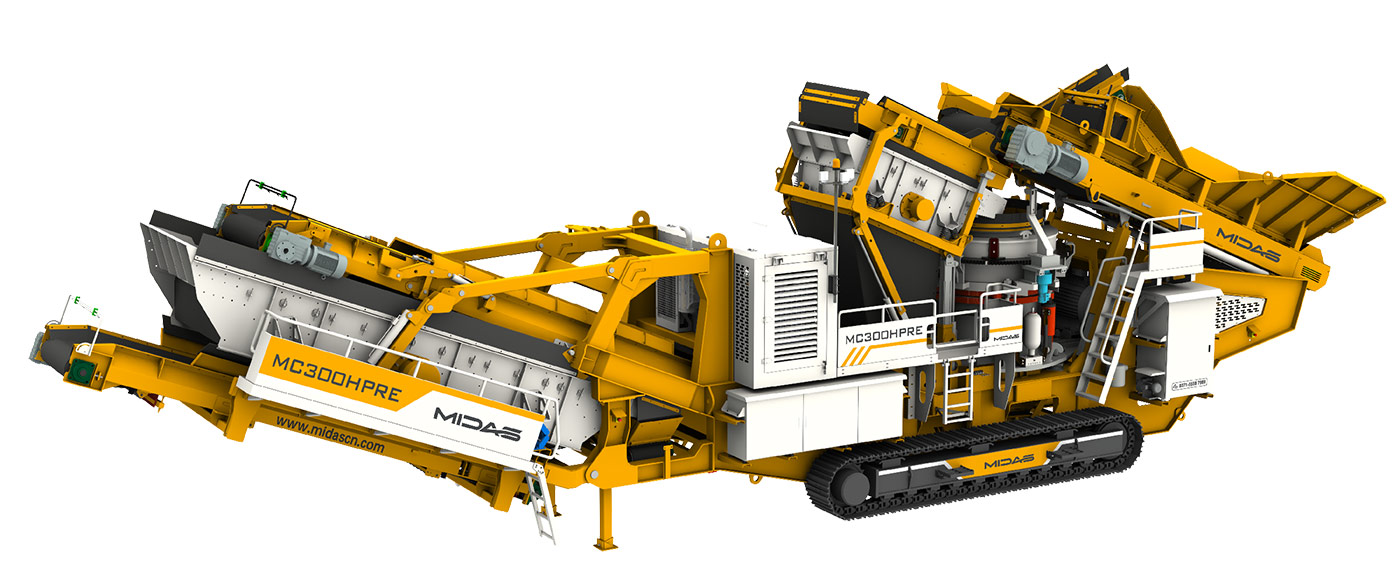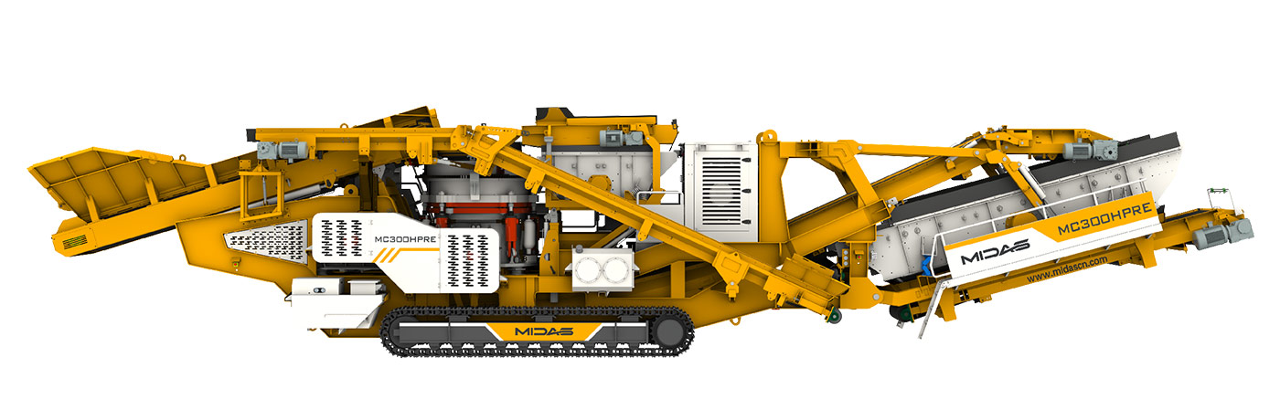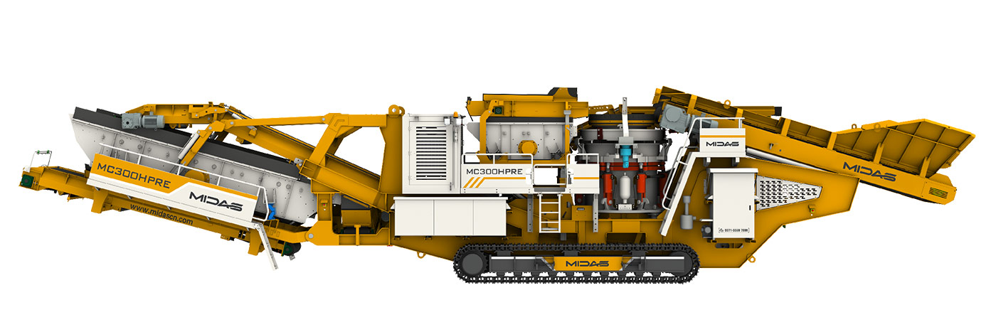 Midas MC系列履带式移动圆锥破碎装置,破碎机采用多缸圆锥,分层破碎,并配备高扭矩低速给料机,保证均匀进料,主要用于二次破碎,适用于中高硬度岩石。整个装置结构紧凑,易于在现场之间移动,破碎产量高,